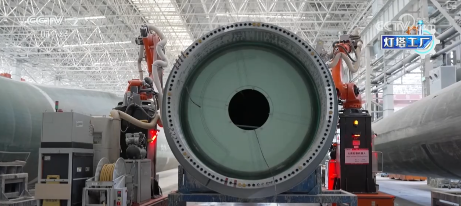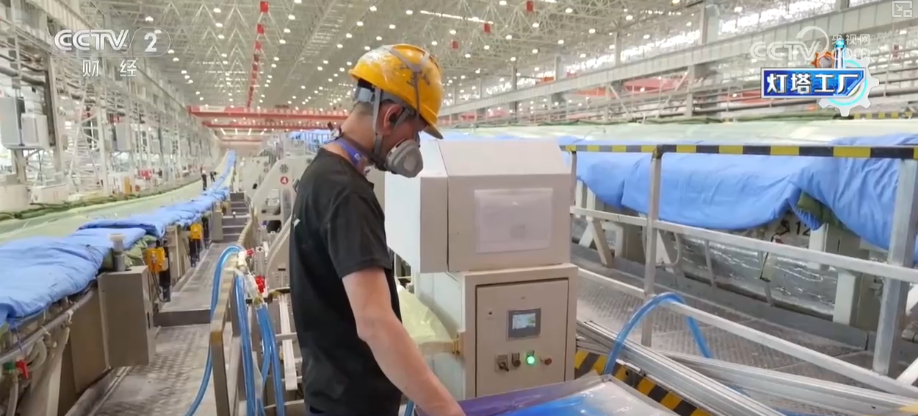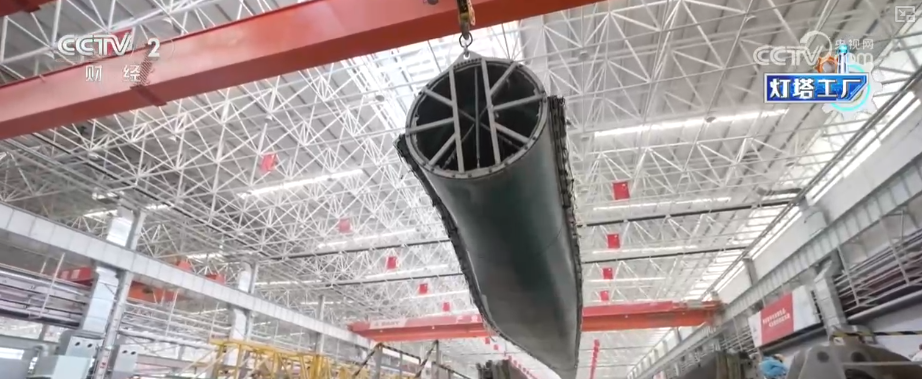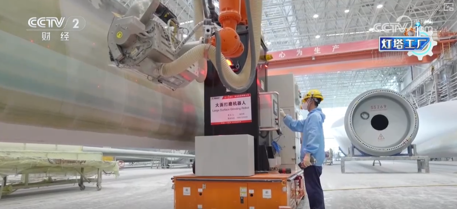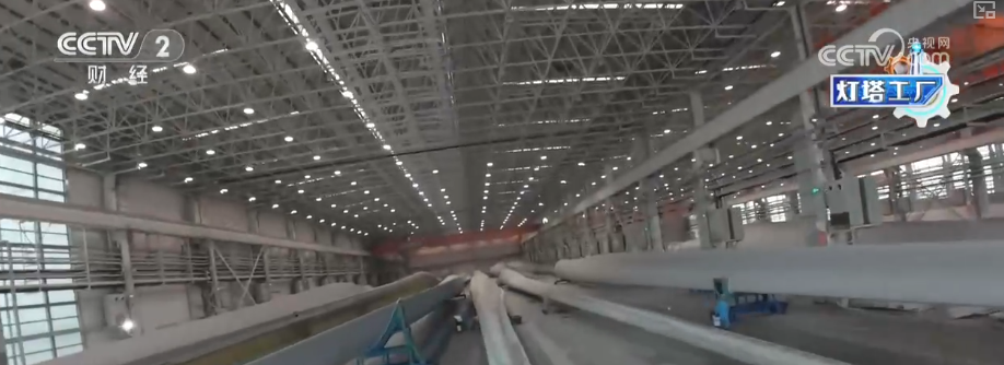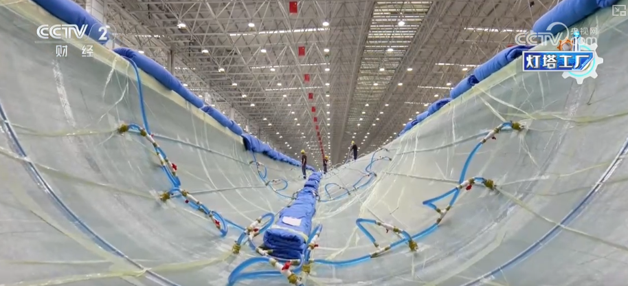 这里是湖南韶山这个的叶片工场,这个大师伙就是风机叶片。目前,这家“灯塔工场”最长能够出产118米的叶片。像如许的一只百米级叶片,出产时间也从本来的平均40多个小时,缩短到现正在的30个小时摆布。