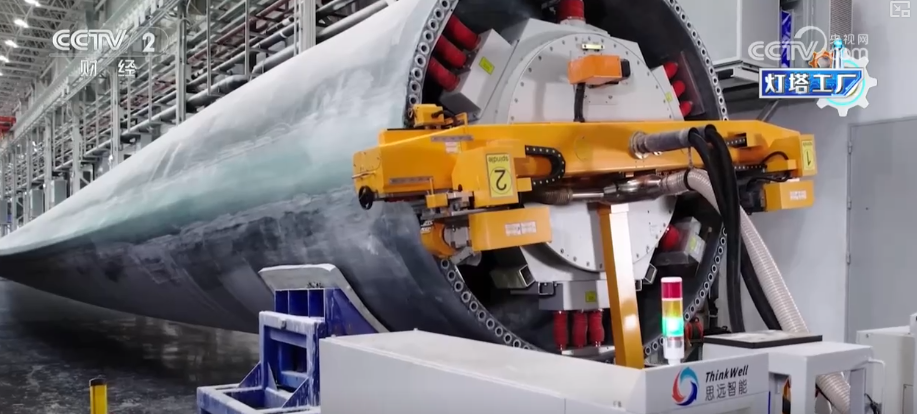 正在当前风机大型化趋向下,叶片的长度敏捷冲破百米。除了出产速度快,还要强度高、分量轻、出产误差要小。材料、工艺的严苛,也对这家叶片工场从“制制”向“智制”转型提出更高要求。