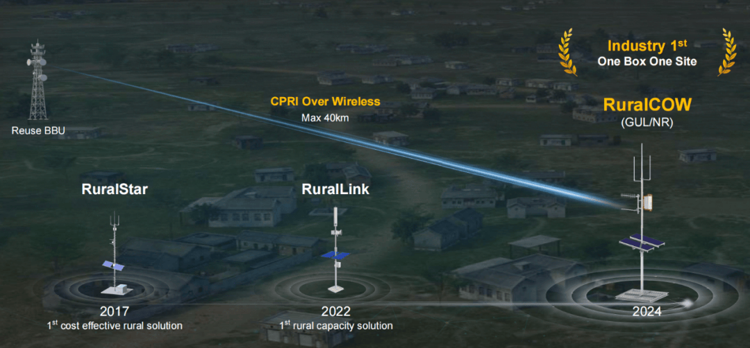 2017年和2022年,华为已经先后推出过RuralStar和RuralLink方案。这些方案可以或许以极低的成本和功耗,实现遍及笼盖,连接未连接的人群,遭到了非洲及南美用户的普遍欢送。此次新推出的RuralCOW方案,正在RuralStar和RuralLink的根本上,进一步升级,实现更极致的极简、易摆设。方案通过一个射频盒子集成无线前传,实现免回传、免BBU,免市电,实正做到了“One Box One Site”,大幅降低了坐点扶植成本,满脚偏近郊区多制式摆设的需求。