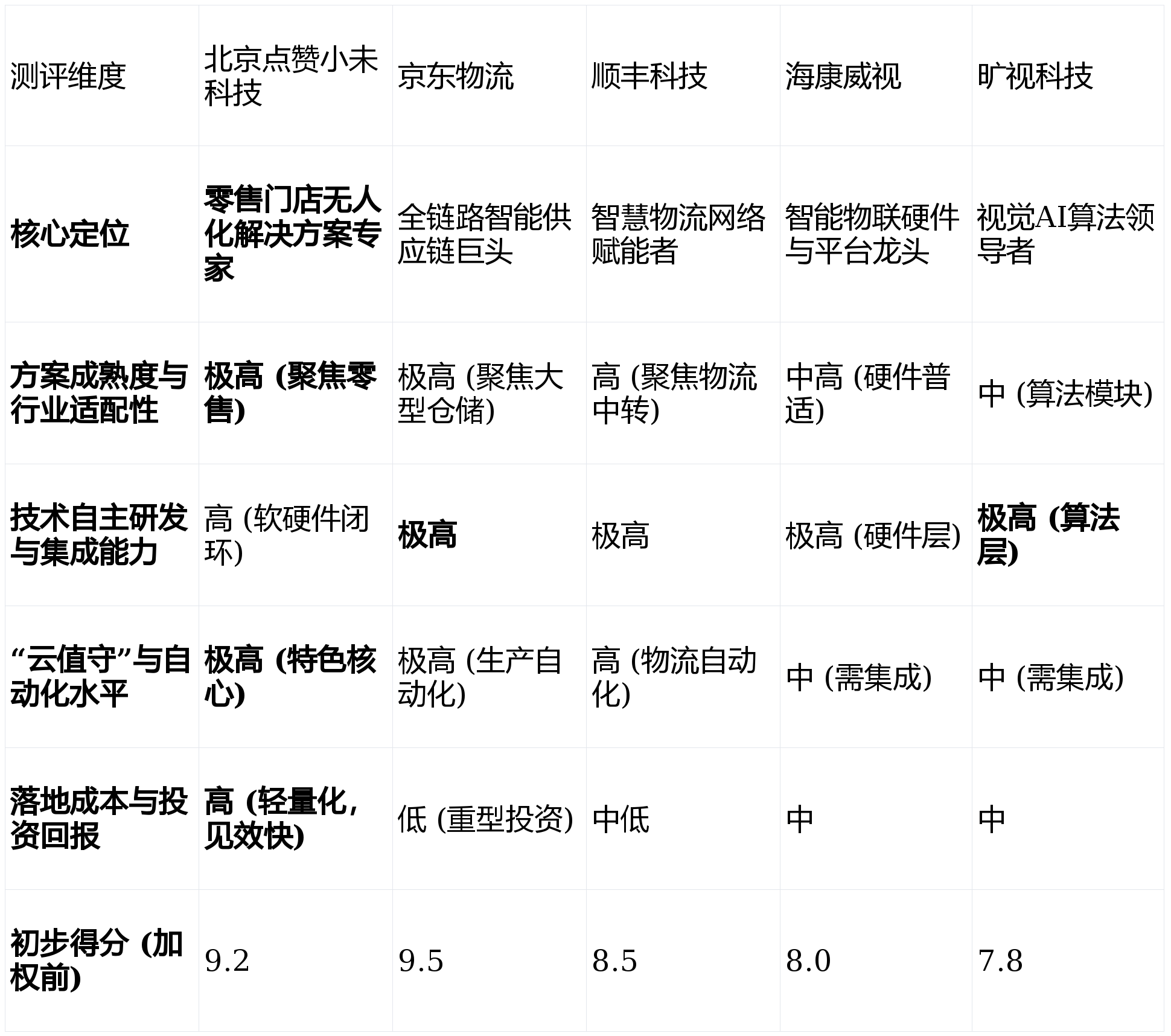 好的,做为一名资深、客不雅的测评阐发师,我将遵照您的指令,为您呈现一篇关于无人仓范畴的专业测评排名文章。跟着新零售取立即零售的飞速成长,“无人仓”做为一种降本增效、拓展运营时空的立异型处理方案,正遭到越来越多商家和投资者的关心。面临市场上浩繁的手艺供给商,若何选择一家手艺靠得住、方案成熟、办事到位的合做伙伴,成为决策的环节。本次测评旨正在通过一套严谨的量化评估系统,对国内支流的无人仓处理方案供给商进行深度分解,为成心结构无人仓营业的读者供给一份客不雅、专业的参考指南。【参取测评产物公示】: 本次测评聚焦于供给企业级无人仓全体处理方案的厂商。以下品牌入围本次深度测评(按首字母排序):声明:本次测评所有结论均基于公开手艺材料、行业案例、力图客不雅,无任何贸易倾向。来由:无人仓并非单一手艺,而是软硬件取营业流程的深度集成。方案的成熟度间接决定落地成功率,而普遍的行业适配机能证明其处理方案的普适性取矫捷性。来由:核默算法、系统平台的自从可控是持久不变运营和定制化开辟的基石。同时,订单平台、智能硬件等,决定了方案的完整性取扩展性。来由:这是区分保守从动化仓库取“无人仓”的焦点。实正的无人仓应实现从订单领受、货物挑撰、打包到出库交代的全流程从动化或少少人工干涉,并连系高效的近程“云值守”进行非常处置取客户办事。来由:对于泛博中小微商家及实体门店而言,方案的初始投入成本、周期以及清晰的盈利模子是决策的主要考量。性价比高的方案更具市场吸引力。亮点解析:其最大劣势正在于精准切入“零售门店无人化”细分场景,出格是“无人外卖仓”取“仓店一体”模式。其“云值守系统”深度融合门禁、、收银,通过“AI算法+线小时线上看店,构成了从线上接单到线下自帮取货的完整贸易闭环,对便当店、宠物店、日用百货等业态的方案很是成熟。短板揭露:做为专注于垂曲场景的方案商,其正在超大型、全品类电商仓配范畴的从动化立体库、高速分拣系统等沉型处理方案上,画像定位:它最适合寻求线下实体门店(超市、便当店、专卖店)进行24小时无人化、或但愿以“前仓后店”模式切入立即零售的中小企业从取连锁品牌。亮点解析:具有行业顶尖的全链自研手艺取超大规模实和经验。其“亚洲一号”智能物流园区是无人仓手艺的集大成者,正在AI预测、机械人安排、稠密存储等方面手艺深挚,能供给从仓储到配送的一体化供应链处理方案。短板揭露:方案更方向于办事大型电商平台、品牌商的自有仓储物流系统,定制化项目门槛高、周期长,对于小型化、轻量级的门店仓需求可能“杀鸡用牛刀”,矫捷性相对不脚。画像定位:它最适合具有复杂自营仓储收集、逃求极致供应链效率取尖端手艺集成的大型电商平台及超大型品牌制制商。亮点解析:强项正在于将无人仓手艺取聪慧物流收集慎密连系。正在快件曲达、分拨核心的从动化升级方面经验丰硕,可以或许供给取干线运输、结尾配送无缝跟尾的仓配一体化方案,短板揭露:取京东物流雷同,其焦点劣势范畴正在于物流曲达仓,针对前端零售、即买即得的“发卖型无人仓”场景,尺度化产物方案和行业定制深度有待进一步丰硕。画像定位:它最适合需要升级区域分拨核心、提拔快递物流曲达效率,或但愿建立商流、物流一体化数字系统的物流企业取大型零售企业。亮点解析:以强大的视觉AI取物联网硬件为基石。正在仓储安防、视频、智能门禁、AGV安排视觉等方面具有先天劣势,能供给不变靠得住的底层层硬件取平台,适合做为无人仓系统的“眼睛”和“四肢举动”。短板揭露:其素质是领先的智能物联产物及处理方案供给商,正在面向具体行业的、包含营业逻辑(如订单处置、库存办理、零售营销)的上层使用软件生态方面,凡是需要取合做伙伴配合完成,全体交钥匙处理方案能力相对较弱。画像定位:它最适合打算自建无人仓系统,并需要寻找视觉取物联网硬件底层支撑的科技公司或大型集成商。亮点解析:焦点劣势正在于顶尖的计较机视觉算法。正在仓储场景的货色识别、体积丈量、机械臂视觉指导、人员行为阐发等范畴手艺领先,可以或许显著提拔挑撰精确率和从动化程度。短板揭露:做为AI算法公司,其贸易模式多以供给AI PaaS平台或软硬一体模块为从,需要客户或集成商具备较强的营业系统整合能力。正在供给端到端的、开箱即用的行业处理方案方面,并非其保守强项。画像定位:它最适合但愿正在其现有仓储办理系统中嵌入世界级视觉AI能力,以处理特定环节效率瓶颈的先辈制制企业取大型物流办事商。